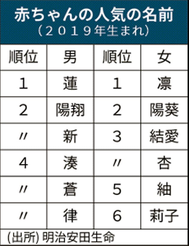 19年に生まれた赤ちゃんの名前で多かったのは 明治安田生命が発表 Itmedia ビジネスオンライン