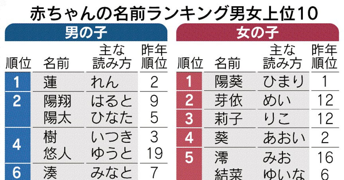 赤ちゃんの名前1位 男の子 蓮 女の子 陽葵 日本経済新聞